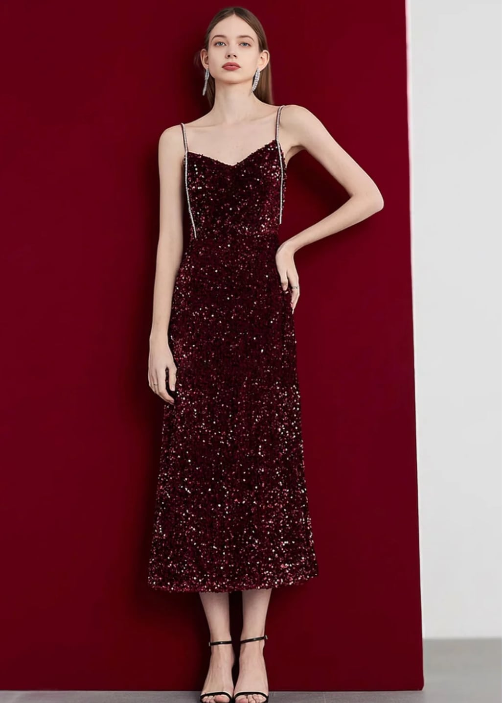 歩くたびにキラキラ煌めくスパンコールが目を引くキャミドレス。