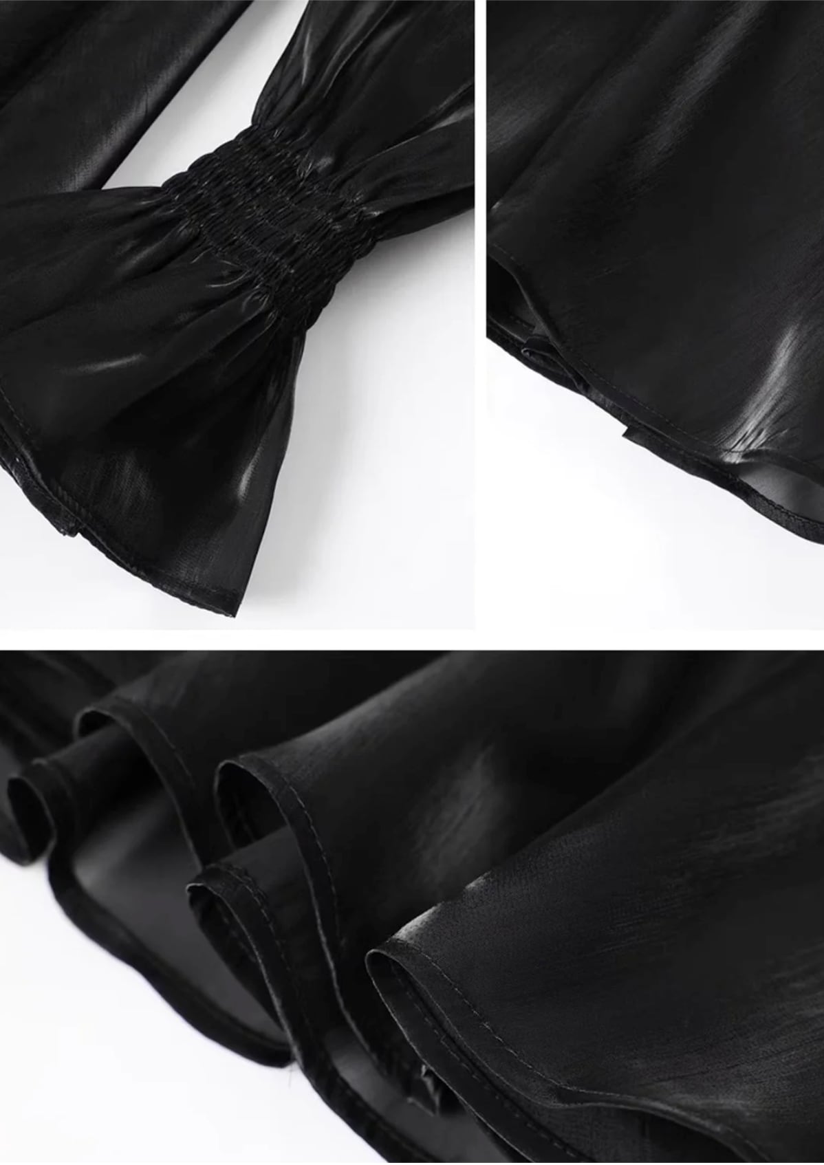 ウエスト位置にギャザーゴムで切り替えを施し着るだけで自然とブラウジングされスタイルアップして見える一枚。