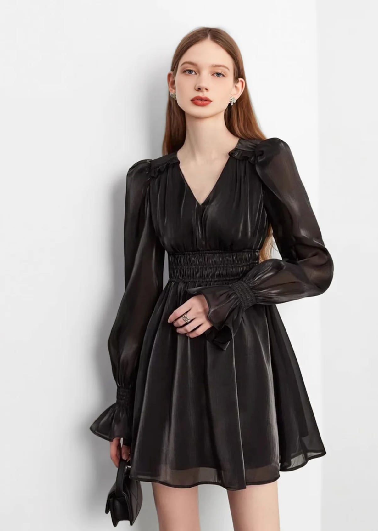 ふんわりとエアリー感のある軽やかな素材とキャンディスリーブデザインが女性らしいミニワンピースです。